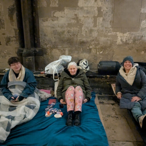 Around 50 people swapped their mattresses for the cold flagstones of the Cloister at Norwich Cathedral as part of a Sleep Out to raise money and awareness about homelessness.